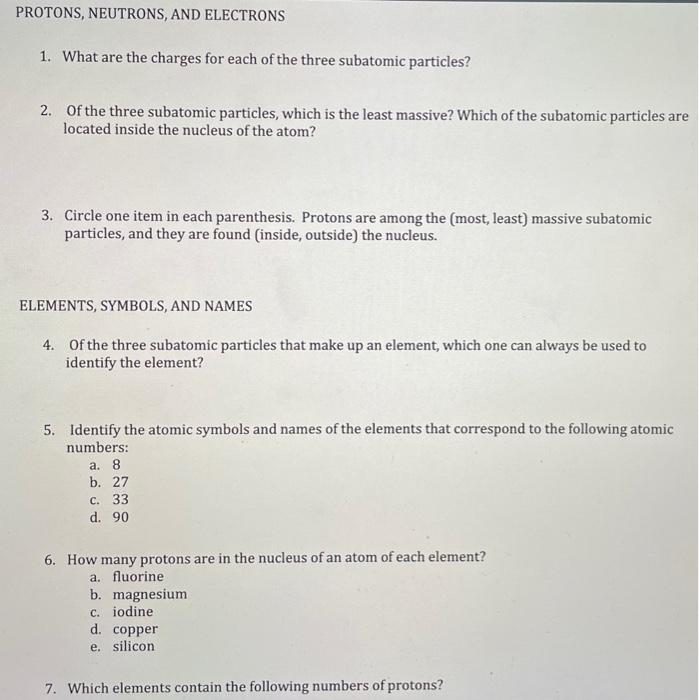 Solved Protons Neutrons And Electrons 1 What Are The Chegg Com